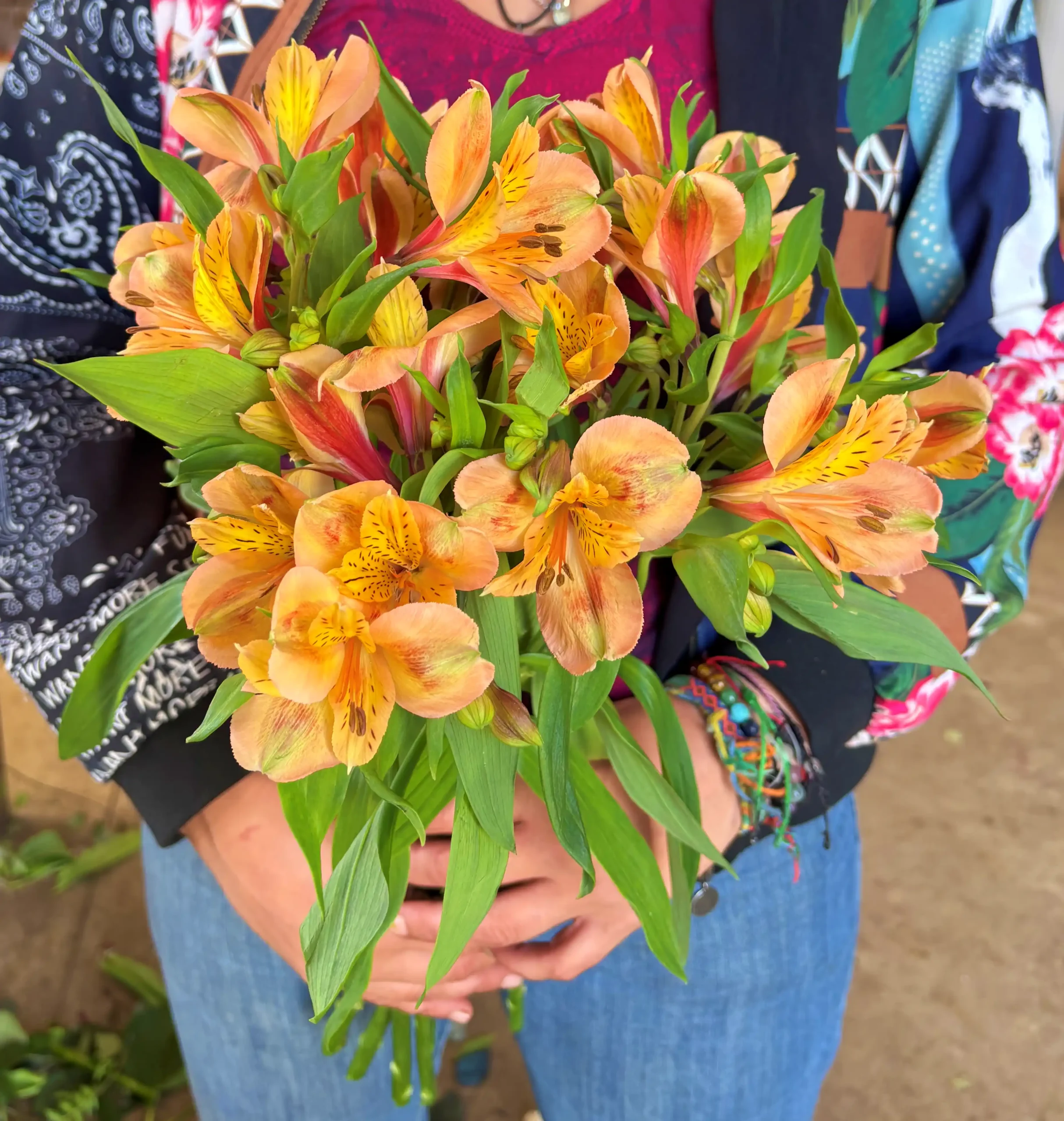 - Alstroemerias naranjas de kilómetro 0, cultivadas localmente.