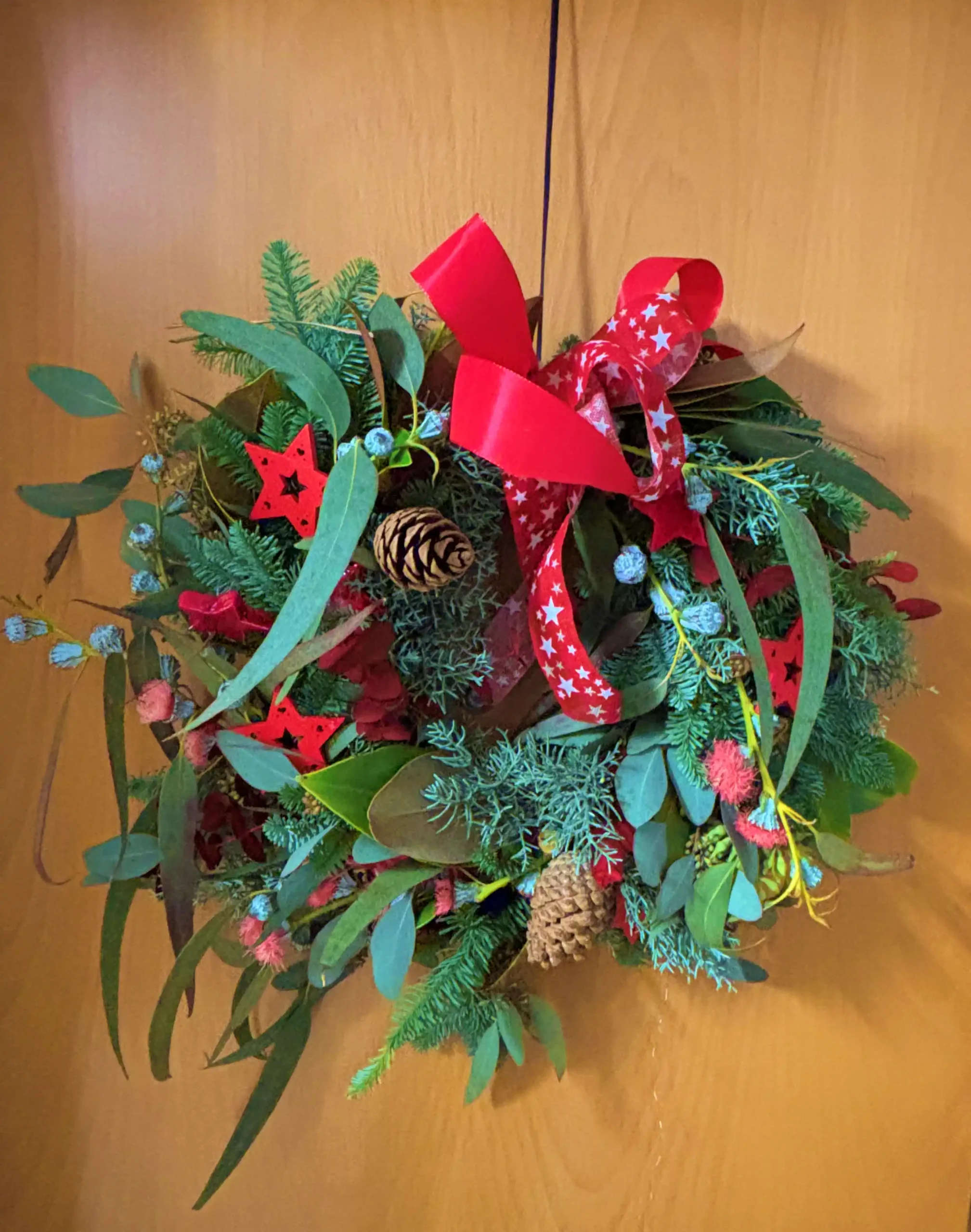 - Materiales naturales: eucalipto fresco, ramas de abeto, piñas y elementos silvestres