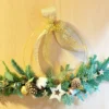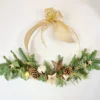El toque final lo pone un precioso lazo dorado con textura y brillo, perfecto para colgar la corona en la puerta de entrada, pared, chimenea o incluso usar como decoración en eventos y mesas navideñas.