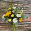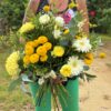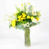 Un estallido de frescura y luminosidad. El Solsticio combina la energía del amarillo con la pureza del blanco, creando un ramo elegante y lleno de vitalidad. Sus gerberas radiantes aportan alegría, los delicados lisianthus blancos transmiten serenidad y los claveles amarillos añaden un toque clásico y sofisticado.