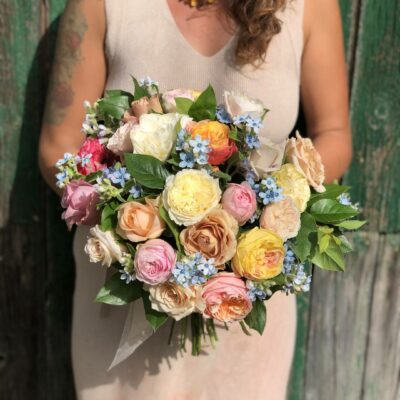 Tu ramo te llegará en una caja de cartón reciclado, en la que encontrarás la dedicatoria, las flores frescas, una tarjeta con trucos para su cuidado y una bolsita de nutrientes para que tu ramo dure mucho más.