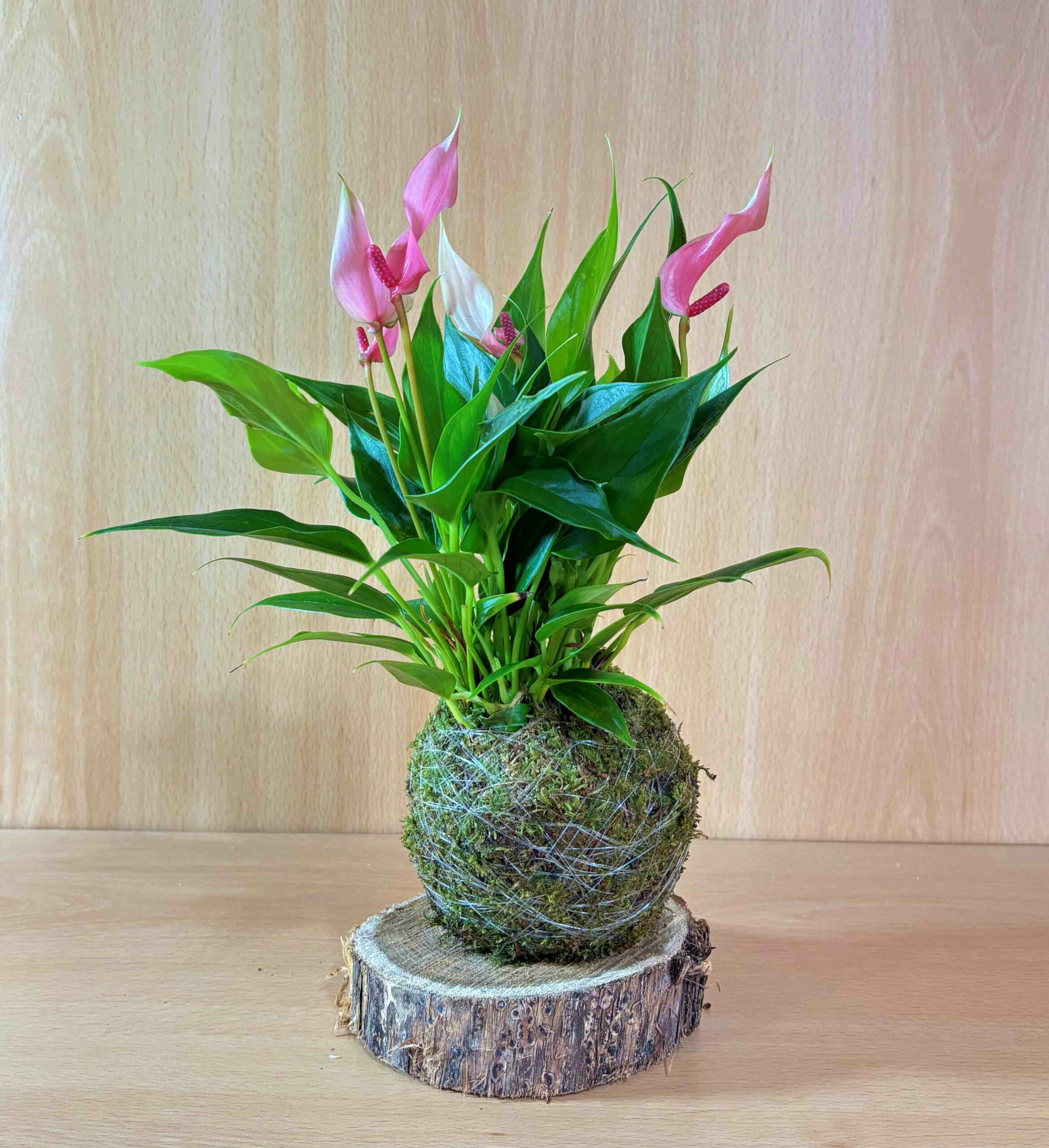 La Kokedama de Anthurium Rosa aporta un toque sofisticado y elegante a cualquier espacio. Sus hojas verdes brillantes y su icónica flor rosa en forma de corazón convierten esta planta en un elemento decorativo único, ideal para salones, oficinas o rincones especiales de tu hogar.