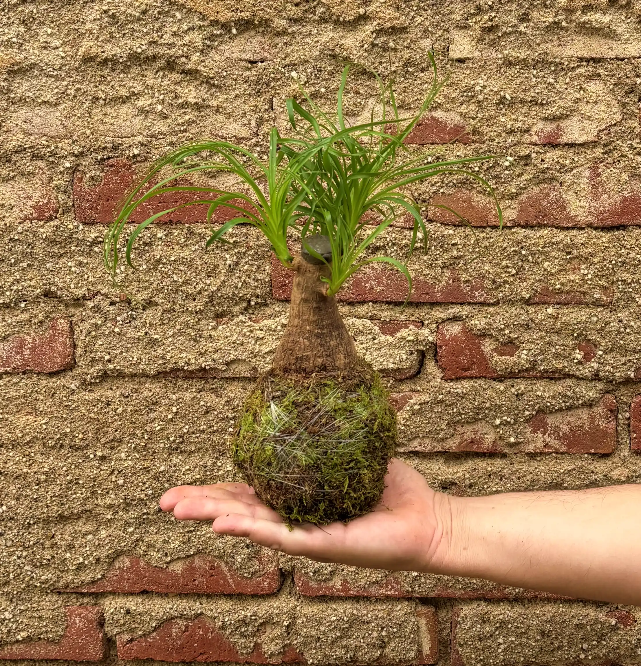 La Kokedama de Beucarnea aporta un toque moderno y elegante a cualquier espacio. Sus hojas verdes y su característico tronco engrosado convierten esta planta en un elemento decorativo único, ideal para salones, oficinas o rincones especiales de tu hogar.