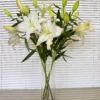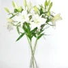 - Lirios blancos cerrados que se abren en casa, más duraderos.