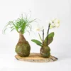 Ambas kokedamas están elaboradas artesanalmente en bola de musgo natural, listas para colocar, ideales para regalar o para crear un rincón armonioso lleno de vida y estilo japonés.
