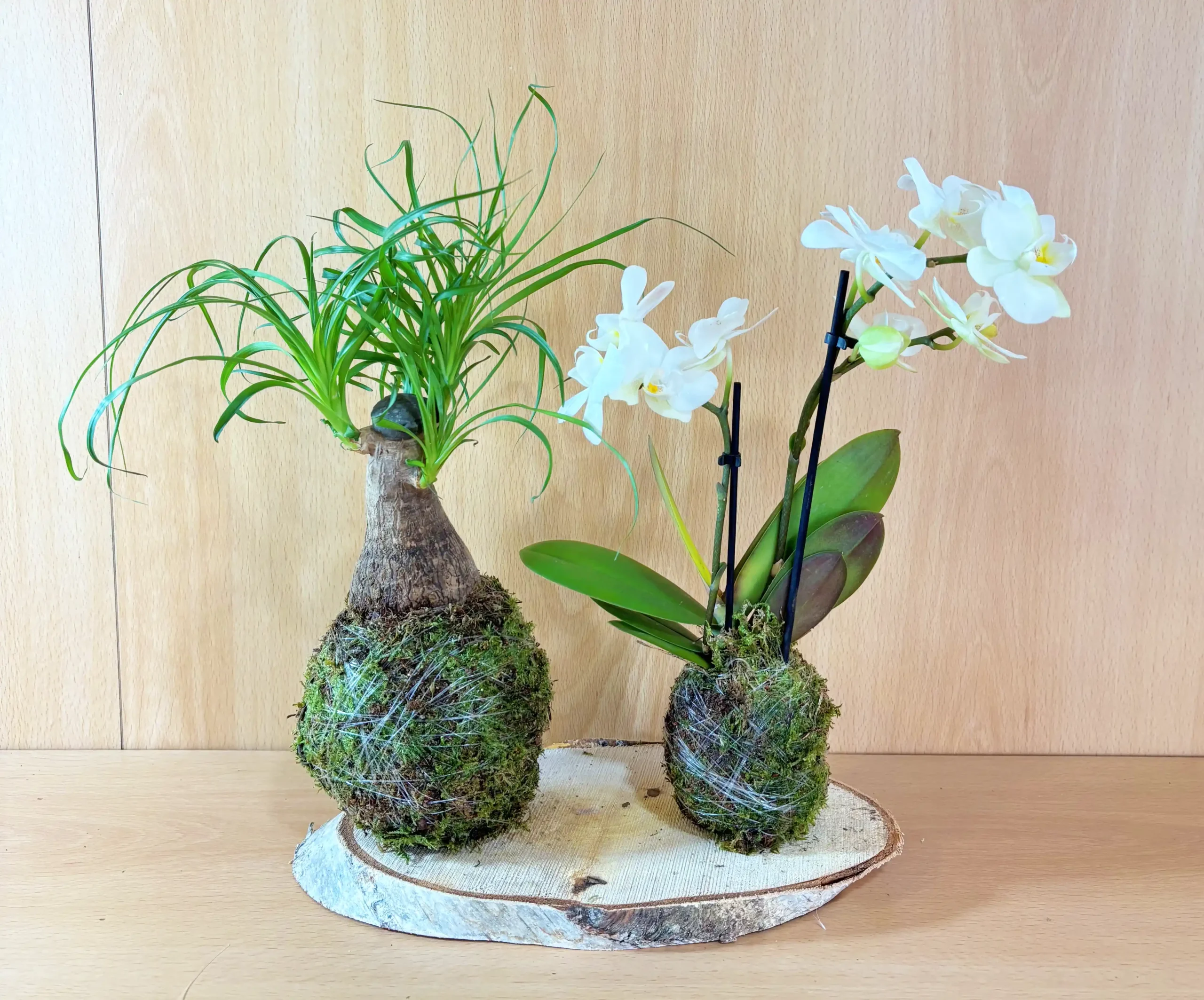 Lleva elegancia y estilo a tu hogar con nuestro Pack Dúo Kokedama, que combina una Beucarnea y una Phalaenopsis Blanca, dos plantas de interior únicas que aportan frescura y sofisticación.