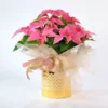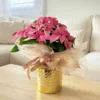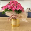 Su base dorada de alta calidad realza el tono rosa de la planta, ofreciendo un acabado elegante y lujoso que convierte a la Pink Gold en una pieza decorativa exclusiva, ideal para hogares, oficinas o comercios que buscan un toque navideño distinto y sofisticado.