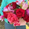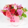 La combinación de flores simboliza amor, ternura, admiración y alegría. Un arreglo equilibrado que transmite emociones profundas con un toque moderno y elegante.